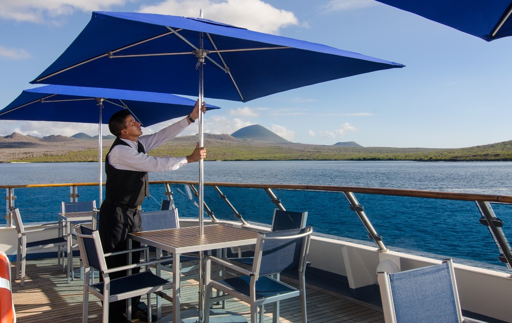 Con una capacidad para sólo 90 pasajeros, nuestros huéspedes podrán disfrutar de un servicio impecable a bordo, personalizado, y con una tripulación entregada y siempre atenta a sus necesidades. Además de disfrutar del Salón Discovery, lugar donde se dan charlas de los lugares visitados, beber en los dos bares que posee nuestra nave y disfrutar de las hermosas vistas de cada destino, o bien relajarse en el jacuzzi, el sauna o tomar sol sin que nadie los moleste.