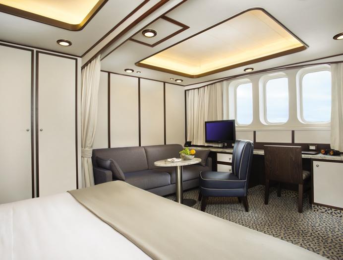 La gran mayoría de las habitaciones son suites con vista al mar y disponen de un balcón privado y todas ofrecen los servicios personalizados de un mayordomo profesional. Te invitamos a que te relajes y dejes tu equipaje a cargo del mayordomo, mientras te embarcas en esta inolvidable aventura a bordo de nuestros cruceros Silversea Expedition.