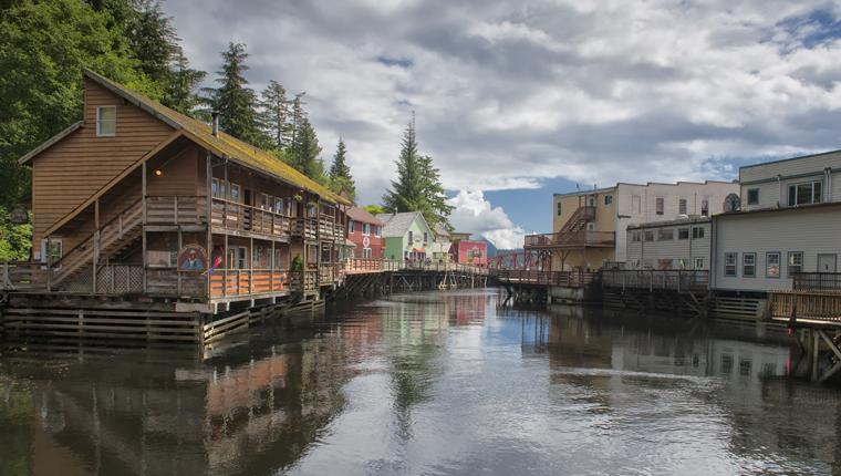 Ketchikan es conocida como la “primera ciudad” de Alaska, debido a su ubicación en el extremo sur del Pasaje Interior. En su origen, fue un centro indígena de salazón de pescado, pero este pequeño pueblo creció exponencialmente durante la “Fiebre del Oro de Klondik”, transformándose en base de suministros y puerto de entrada de mineros. Si bien, su pasado indígena sigue latente, en sus cercanías podrás asombrarte con los típicos tótems tallados con muchos colores y escucharás las fascinantes leyendas que los rodean.