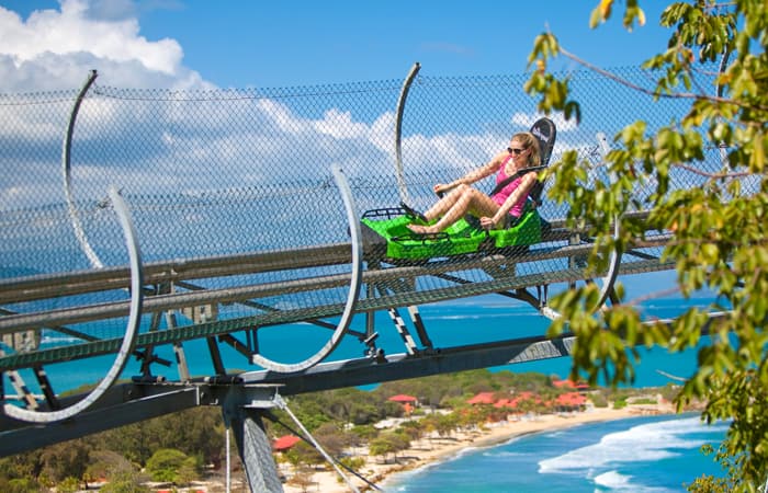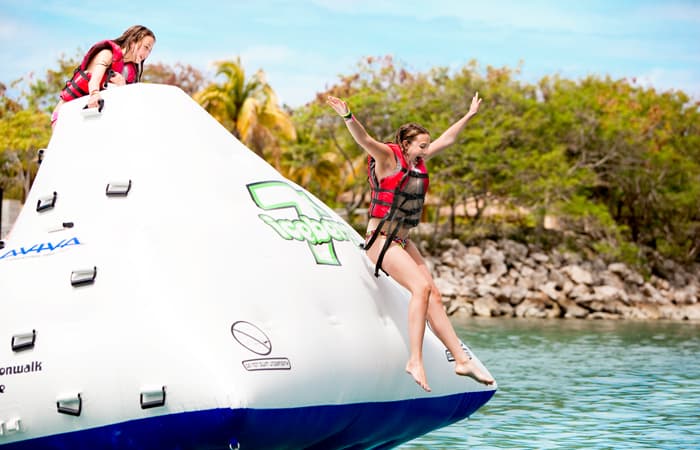 Son múltiples las actividades en este destino privado, desde perseguir la adrenalina en una montaña rusa alpina, hasta descansar en sus playas paradisiacas. Podrás caminar hasta la cima de la montaña para tomar aire en una de las tirolinas más larga del mundo sobre el agua, pasear en bote para disfrutar de las vistas del océano o descansar en tu propio bungalow en la playa.