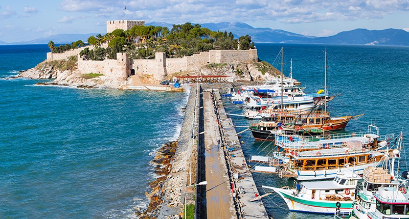 Kusadasi es tu entrada a Éfeso ya que sólo se encuentra a 20 kilómetros. Si bien es una ciudad balneario en la costa egea de Turquía, la ciudad está rodeada de monumentos famosísimos del Mundo Antiguo. Actualmente, Kusadasi está considerada como uno de los mejores balnearios de Turquía, gracias al clima mediterráneo, playas de arena dorada, mar tibio y sobre todo de condiciones perfectas para el descanso activo ya sea practicando windsurf, esquí acuático o jugando voleibol de playa.