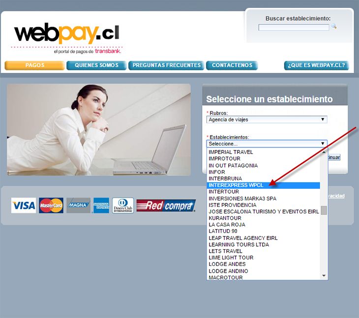4 - En el campo “Establecimientos selecciona “Interexpress WPCL” y continuar Ver ejemplo